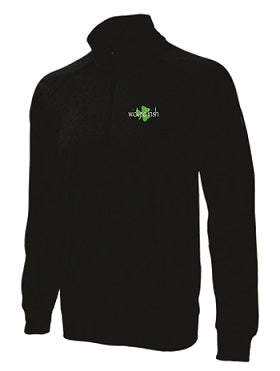 Cool, dry and colorfast, this quarter-zip pullover has a pill-resistant, snag-resistant face with a matte finish and brushed backing for comfort. It features double-knit construction, as well as a zippered pocket on the left sleeve and a chin guard.