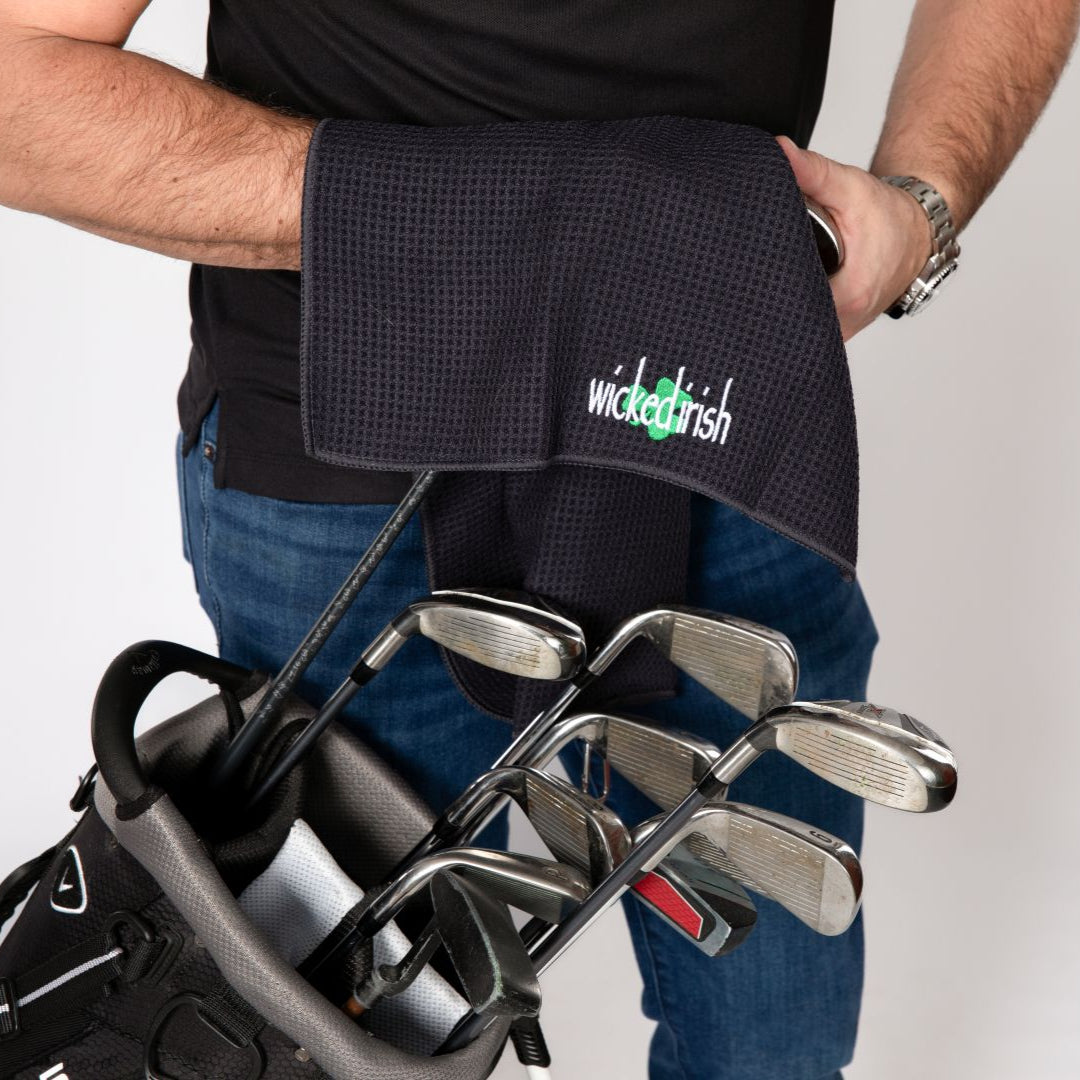 No golfer should be without this lightweight, odor-fighting and super absorbent towel. Tri-fold with center silver carabiner secures it to the bag.